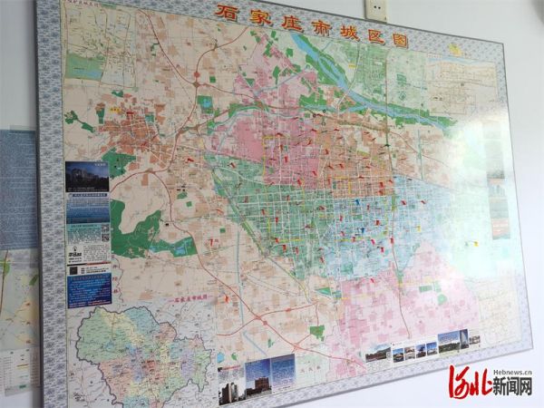 在小许到家创始人许耀宁办公室内,一张石家庄市城区图上布满红色小旗帜。每一面小旗帜代表着小许到家社区团购店铺的位置。河北日报记者赵泽众摄