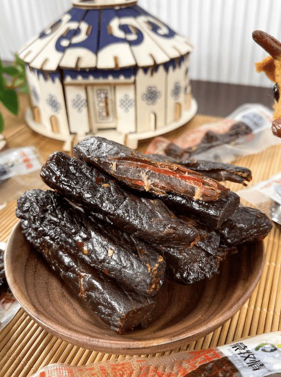 公认的休闲零食标配:薯片、巧克力、牛肉干,其中牛肉干这款经典零食,发源地就在内蒙古,最初是成吉思汗时期即出现的蒙古铁骑军粮,“出入只饮马乳,或宰牛羊为粮”。蒙古族人视牛肉干为珍贵神圣的食物,这一点的信仰,是内蒙食品品牌不会逾越的底线,也是区别于其他地域品牌的优势之一。