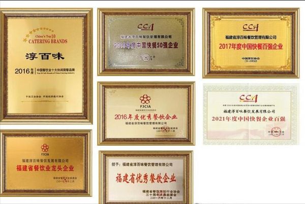 凭借着卓越的产品品质、创新的经营模式和良好的市场口碑,淳百味在餐饮行业中斩获了多项荣誉。这些荣誉不仅是对淳百味过去努力的肯定,更是对品牌未来发展的激励。在众多奖项中,有一些具有代表性的荣誉,充分彰显了淳百味的品牌实力和市场影响力。