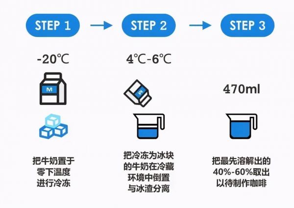 也就是说,我们把牛奶冷冻,使除水以外的营养物质和水分离,而这些物质会在牛奶解冻时更早被融解出来,完成了类似“提纯”的步骤。
