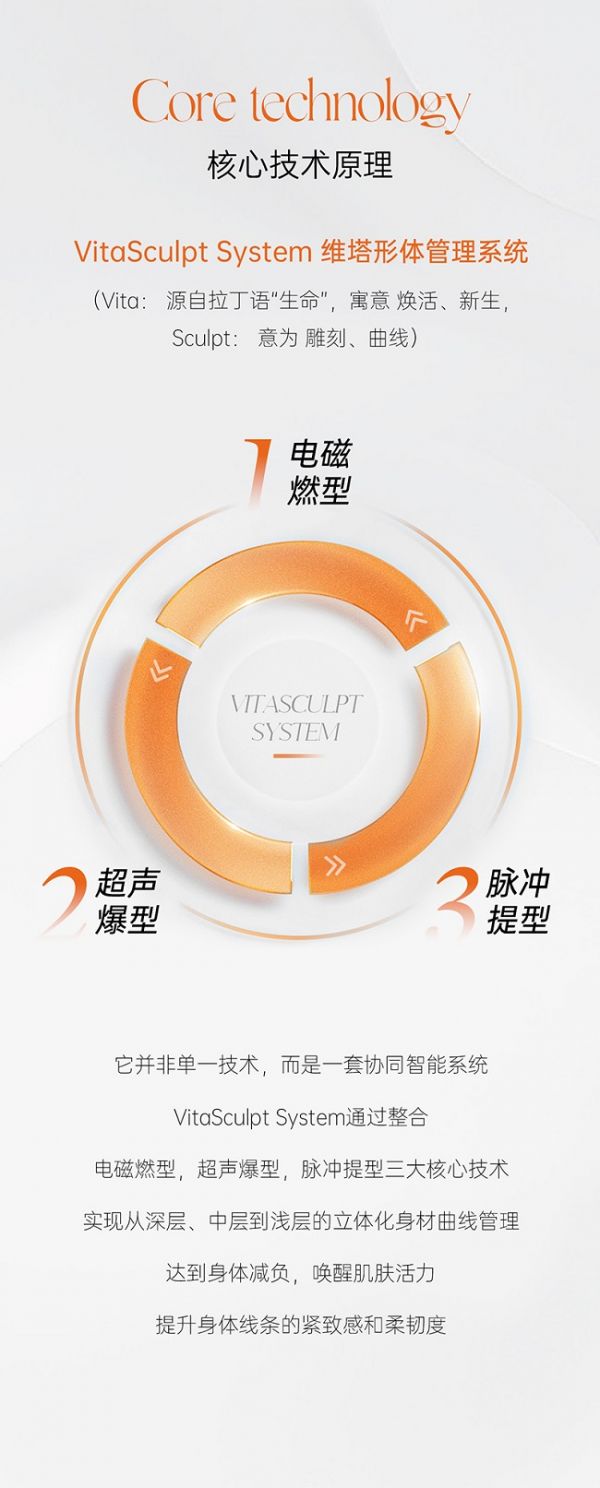 纤影刀的核心竞争力源于其搭载的VitaSculpt维塔生命形体管理系统。该系统融合电磁燃型、超声爆型与脉冲塑型三大核心技术,协同作用,精准干预脂肪与筋膜层,重塑天生弧度。电磁燃型技术采用250KHz电磁热,深入皮下及内脏脂肪层,通过提升基础体温激活代谢,逆转慢代谢状态。研究表明,体温每提升1℃,免疫力增强五至六倍,新陈代谢提升12%。超声爆型则以40KHz的黄金频率作用于细胞,通过空化效应实现“听得见的爆型”。而脉冲塑型技术结合真空负压与微空泡刺激,作用于筋膜层,促进循环代谢、水肿缓解、轮廓调整,实现热效应与微刺激的双效合一。