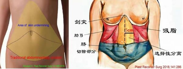 腹壁成形是腹壁整形手术,主要针对剖腹产/顺产后,腹部脂肪堆积皮肤松弛,长时间无法恢复的女性,或者大基数体重短期迅速减重后,腹部皮肤松弛无法恢复的女性。腹壁成形涉及腹壁皮肤组织、皮下脂肪、腹直肌前鞘。