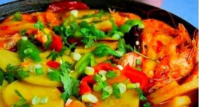 接下来,让我们尝试一种新的美味组合——水煮土豆片加入虾。这道菜使用多重调料,能能进一步提升土豆的香味,同时带来虾的鲜美。