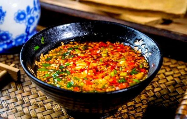 接下来,我们调制一个通用的蘸料:将蒜末、小米辣和少许热油混合,再加入适量的醋、生抽和蚝油,搅拌均匀即可。