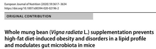具体来看,中国农业大学研究团队以高脂饮食诱导的脂肪肝小鼠为对象设计对照实验,选取了32只小鼠分为正常饮食组、高脂饮食组、高脂+30%全绿豆粉组、高脂+30%去皮绿豆粉组,开展12周系统研究。