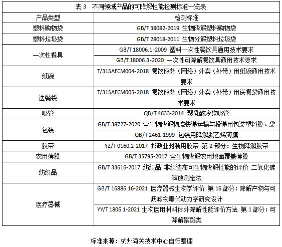 根据不同领域的产品,可降解性能检测标准主要如表3所示: