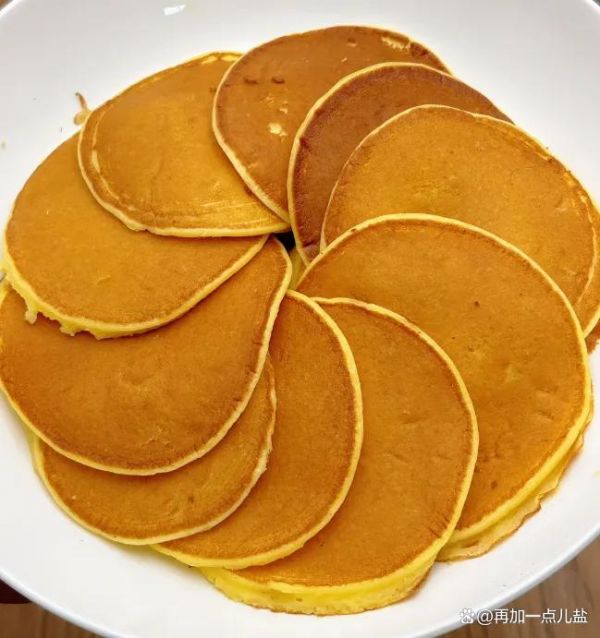 出锅叠高高,淋一勺蜂蜜,再丢一颗黄油块,热乎的饼把黄油慢慢化开,奶香翻倍。