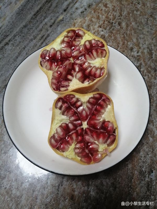 石榴果肉味道鲜甜,一粒粒饱满的果肉晶莹剔透,只是果肉里面还有一个小核要吐出来。石榴具有止血收敛,解酒,抗菌杀虫的功效,具有抗衰老,保护神经系统,稳定情绪的作用,石榴含有花青素和石榴多酚,能够清除人体自由基,延缓衰老,而且能够保持肌肤水润,起到美容的功效。