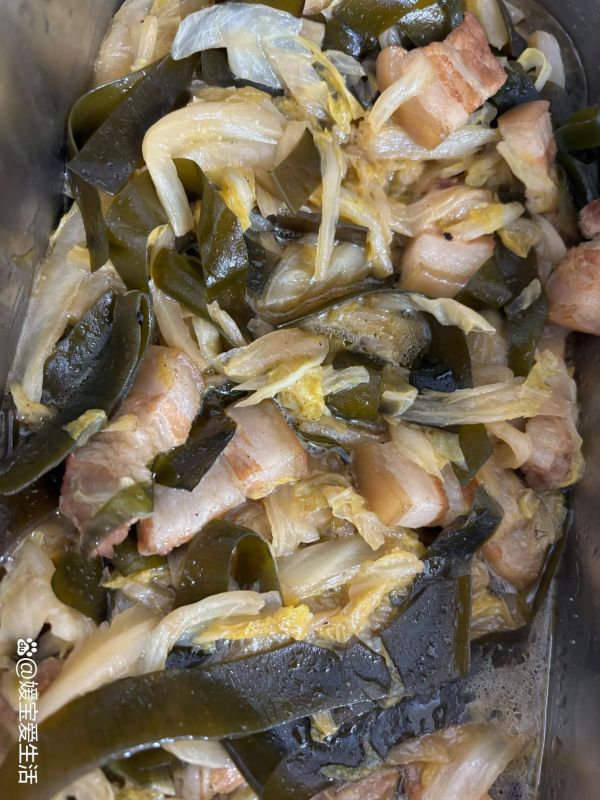 红烧肉那可是很多人的心头好,软糯入味、肥而不腻,单吃可能会觉得有点油腻,但是搭配上海带和白菜就不一样啦。海带富含碘、钙等矿物质以及多种膳食纤维,白菜含有丰富的维生素、水分和膳食纤维,它们吸收了红烧肉的汤汁,变得特别鲜美,同时也中和了红烧肉的油腻感,让整道菜营养更加均衡,味道也更加丰富了。