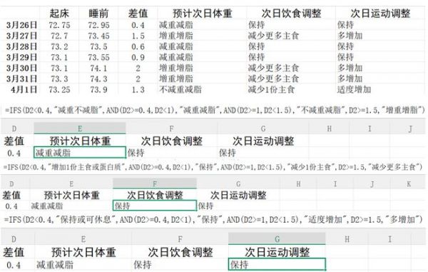 注意,以上供基础参考,不能教条化,大家可以尝试一两周,根据自己的情况调整参考数值。大家也可以做一个表格,设置一个条件函数就行。
