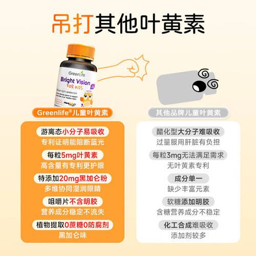 2. GreenLife进口叶黄素儿童青少年黑加仑维生素C护眼咀嚼片:护眼与成长兼得