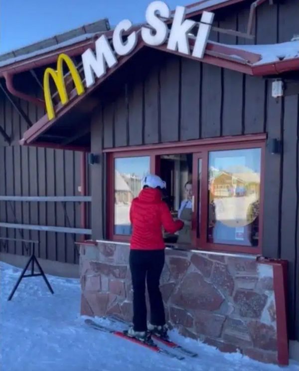 • 不同于常见的“Drive-Thru”(得来速),McSki 提供的是全球独一份的 “Ski-Thru” 服务。滑雪者可以直接踩着雪板滑到点餐窗口,买完热腾腾的汉堡、薯条或热巧克力,然后立刻滑走继续享受雪道。