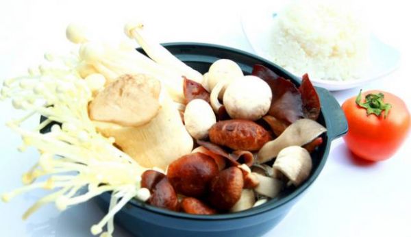 2.把水煮滚,放入鲜香菇、生姜、豆腐,用大火煮十分钟,再转至中小火煮至香菇熟透,再放入猪肉片,待肉片熟透后,加入盐和鸡精调味即可。
