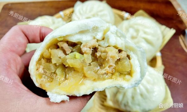 做法:冬瓜去皮切成细丁,用盐腌制片刻,挤去多余水分;猪肉洗净,切成小丁,加入生抽、料酒、葱姜末拌匀;将挤干水分的冬瓜丁与猪肉混合,调入盐、食用油、香油,拌匀成包子馅;将发酵好的面团分成小剂子,擀成包子皮,包入馅料;包好的包子放入蒸笼,二次发酵15分钟后,开大火蒸15分钟即可。