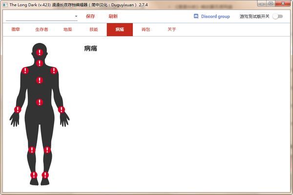 具体功能主要包括:负重修改,疾病修改,背包物品修改,徽章进度修改等等。