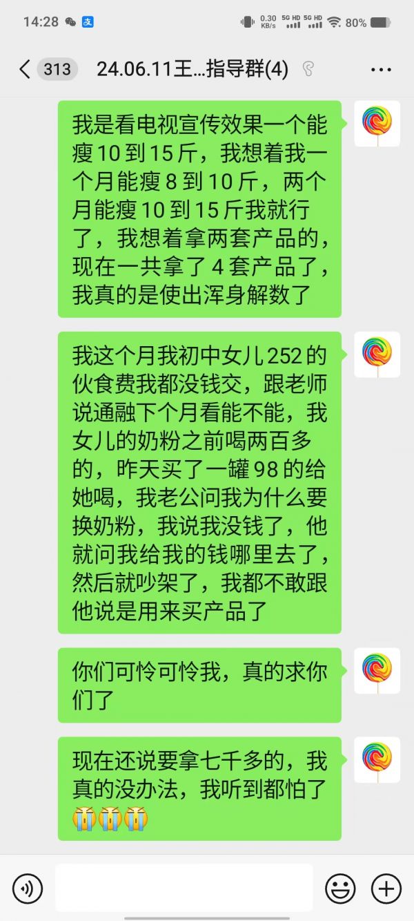 2024年5月16号在贵州卫视晚上22点至23点这个时间看了个减肥广告栏目。一个叫做许葵老师做的电视广告,节目中还请了所谓的明星登台,一些减肥成功的人的前后对比照片。我看了心动了,就扫一扫加栏目上的微信二维码,添加了所谓的顾问,顾问告诉我,不用节食,只用一个疗程,就可以瘦8-10斤,在我多次询问下,对方确保一定会瘦下来,一定不会反弹(有截图为证),我就心动了,当天下午16:16:56就付了1680元,结果还没怎么使用又来一个白老师用座机010开头的电话给我打电话,他又推荐我再买三套用就能达到理想效果,说要五千多六千左右,我说我没那么多钱了,我考虑一下,然后他又给我打电话,说如果不买肯定会是反弹的,且对身体健康有影响,(有录音)我又有点动摇,但是我家里又很贫困,一个人在家带孩子没有收入,我一直说没有钱,对方就让我只付了4816,我找了三个朋友借钱,才凑到付给对方。当我以为这个钱付完就可以结束的时候,6月19号又来个范老师打电话说我排便次数少,代谢不行,体内垃圾毒素多,需要购买排毒产品一起用,不然没效果,范老师第一次说那套排毒产品要九千多,我听了当时就吓哭了,我哭着说我没那么多钱,我说我不减了,手里没开封的产品可以退吗?范老师说退不了,还说减不减随便我,如果不再买排毒产品就不再指导我怎么用产品了,还说不排毒,后面就会得病,吓得我整晚整晚睡不好觉,但是我已经没有钱了,就没有买,对方看我没钱再买产品了就直接将我拉黑,后来我上网查询,发现对方发的产品都是普通食品,根本就不是减肥产品,对减肥一点帮助都没有,网上卖几十块一盒对方卖给我几千一盒,才发现上当,且对方说的我体内有毒素,和脂肪粘稠相关的话术均为虚构事实,只为了逼我让我不断购买产品,一批接一批,直到我实在没有钱为止,我上网查询对方公司名称,发现很多人投诉,都跟我情况一模一样,希望有关部门领导为民做主打击这些无良公司,更不要让对方再次在电视台上引流骗更多的老百姓。