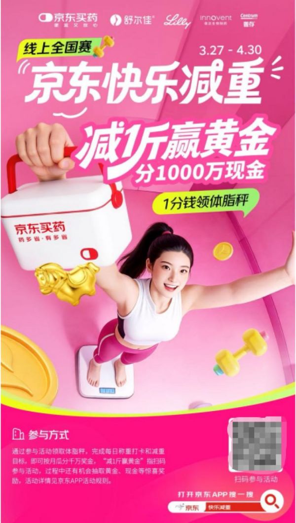 自3月27日京东“快乐减重”线下城市赛启动以来,活动凭借“减一斤给100元”的减重激励,迅速收获全国用户广泛关注与参与。用户报名成功后,可在北京、上海、广州、深圳、天津五城京东大药房预约称重,减重满5斤起给,每减1斤得100元,最高可得1000元现金。