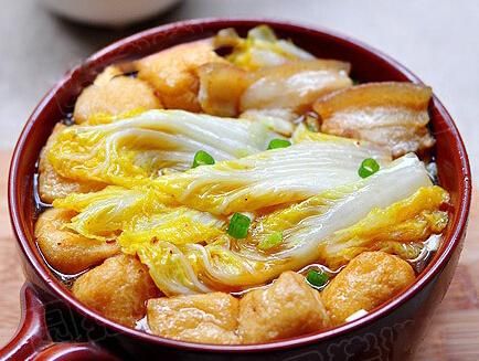 7.加入油豆腐,大火烧开后转小火再炖上5分钟,移入烧热的砂锅中即可 。