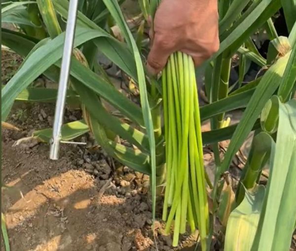 蒜苔大概都是家家户户常吃的菜,它是大蒜的嫩茎,被蒜叶一层层包着,就像穿了件防弹衣,害虫根本碰不到,再加上大蒜味道冲,虫子更躲得远,不用打农药也能长得好。