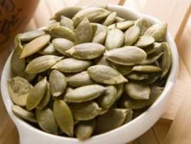 南瓜籽中的镁含量高,两大汤匙南瓜籽含有74毫克的镁,相当于每日建议摄入量的四分之一。