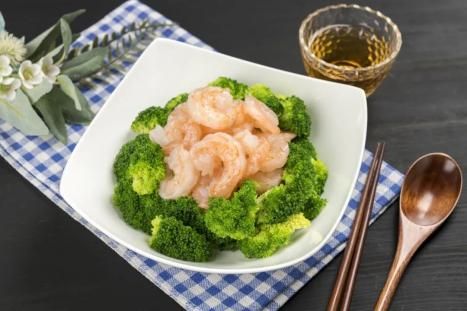 西兰花炒虾仁(西兰花90克、冻虾仁90克)