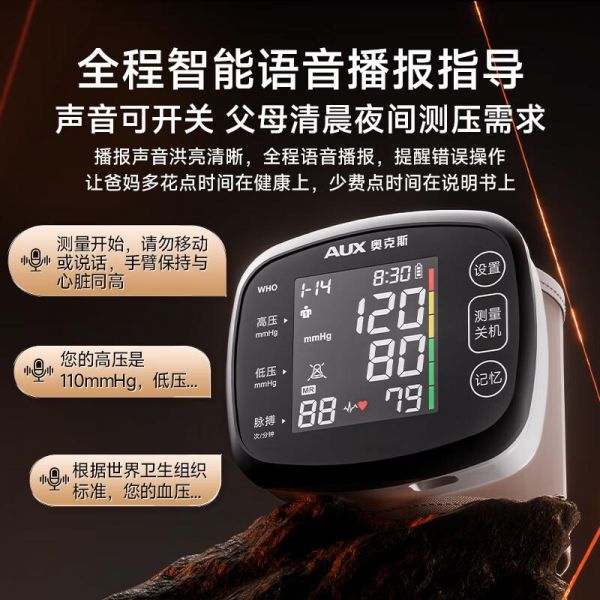 产品种类丰富,使得消费者可以根据自身需求进行选择。奥克斯血压计有多个型号可供选择,包括手腕式和臂式设计。这些设计旨在提升用户体验,满足不同年龄层人群的需求。特别是在日常家庭使用中,便捷的手腕式型号因其易于携带和操作而受到青睐,适合每天在家中或出行时进行血压监测。