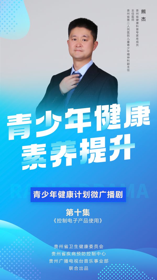 大家好!我是贵州省健康科普专家库成员,贵州省第二人民医院儿童青少年精神科副主任熊杰。今天我们的主题是:对于青少年电子产品使用的控制。