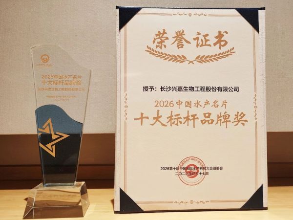 4月17日,第十届中国国际水产科技大会在成都隆重召开。长沙兴嘉生物工程股份有限公司受邀参会,凭借在水产微矿营养领域的原创技术、卓越产品品质及产业赋能成果,荣获“2026中国水产名片·十大标杆品牌奖”。