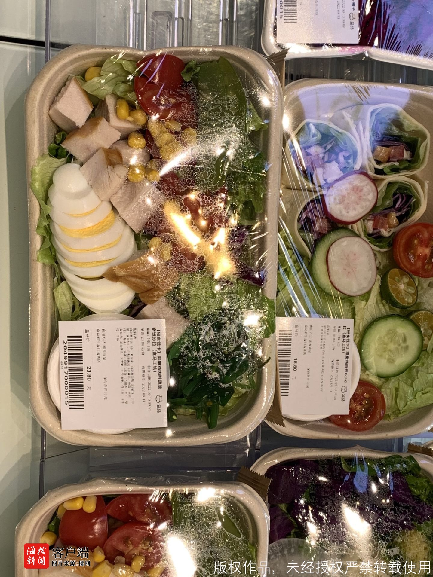 此外,记者还走访了海口部分罗森门店,正值下午时分,有的门店轻食货架上仅剩一盒土豆泥和香熏鸡肉蔬菜沙拉。店内工作人员告诉记者,其他的轻食餐均已售罄。在记者进一步询问及轻食餐的销量,工作人员表示,还不错,许多附近上班的白领会选购该类食品。