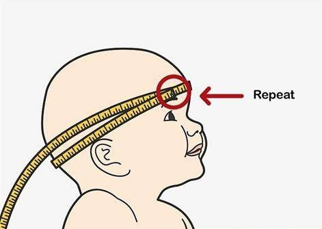 用一根软尺,量眉毛上缘至枕骨粗隆(后脑勺凸起的位置),量3次取平均值。