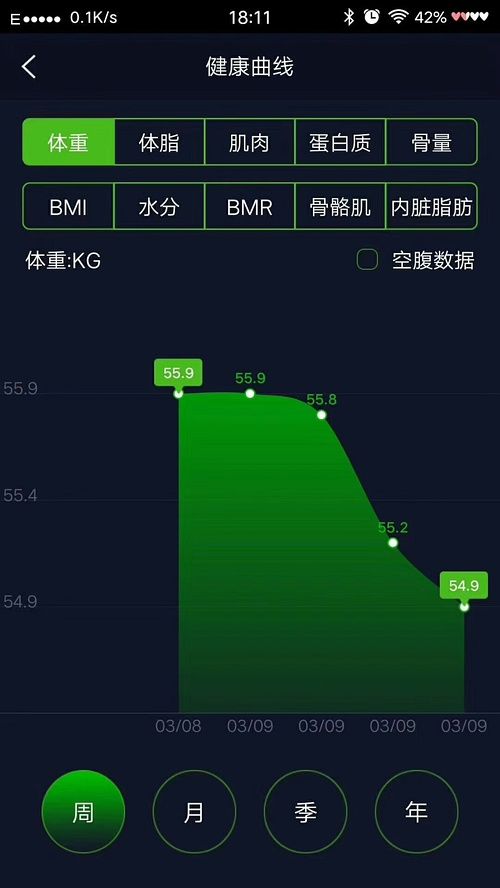 非常明显的 体重一直在下降 但这不是重点 做为一个资深减肥人士 我认为体重的变化并不是最重要的 减重的最终目的应该是减脂增肌 从图里也可以看出来 我的体脂率在下降 肌肉率在上升 这才是真的健康的减肥 跟以往用的那些减掉身体里几斤水的减肥产品大不相同