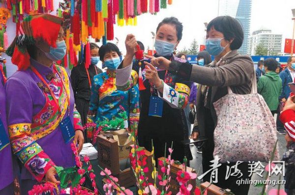 “青绣”荷包、藏香香囊、“花花”面食、泥塑、唐卡……西宁市中心广场上,好吃的、好玩儿的,好看的还有好用的琳琅满目,让人驻足徘徊。
