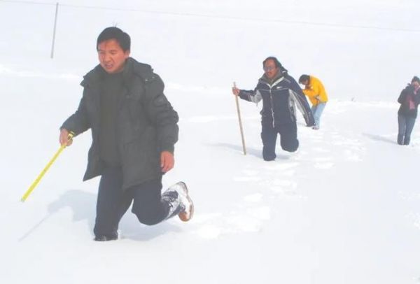 石渠,年平均气温仅为零下1.4℃,极端最低气温达到了零下37.8℃。即使是盛夏八月,这里仍然大雪飘飞,气温降到0℃以下。大雪一下,四周一片白茫。观测场被冰雪覆盖后,观测员只能凭着感觉,踩着齐膝深的积雪,向观测场的方向摸索着前行。找到百叶箱,观测完温度和湿度后,观测员又戴上手套,在雪地上摸索着寻找地温表。在茫茫冰雪中寻找三支不到20厘米长的地温表,往往要花上较长时间。观测完地温表,观测员的双手也被冰雪洇湿,冻得几乎麻木。