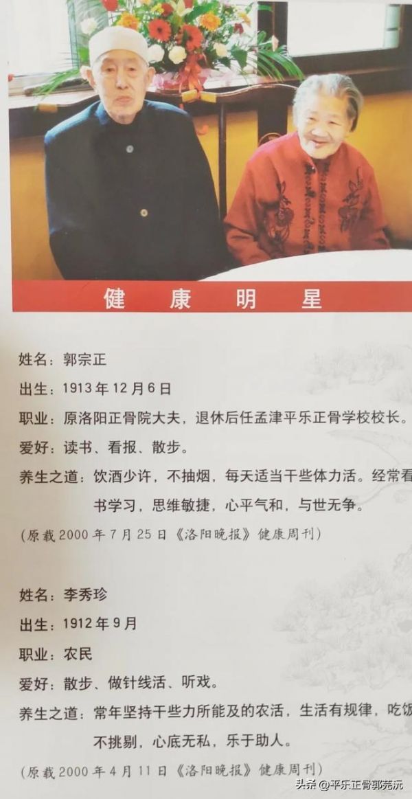 2000年,郭老与老伴儿李秀珍被《洛阳晚报》评为健康明星(下图)