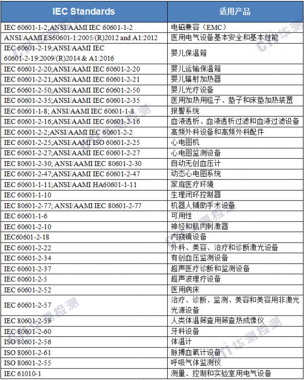 华测检测此次FDA ASCA认可实验室授权医疗器械产品范围如下: