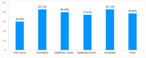 而在高血压的治疗中,最让医师们困惑的药物为“α受体阻断剂”和“β受体阻断剂”43.17%,其次为“血管紧张素I受体阻断剂”40.29%,之后依次为“利尿剂”、“血管紧张素Ⅱ受体拮抗剂”和“钙离子拮抗剂”。