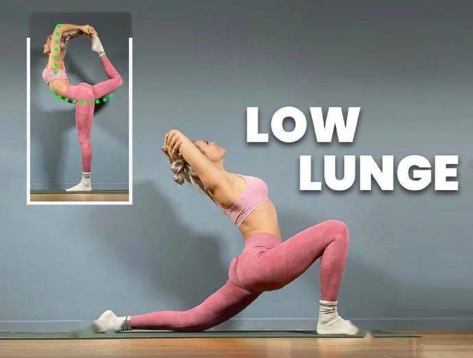4、拉伸髋关节,延展腹股沟,可以让血脉通畅、紧致皮肤,达到排毒养颜的效果;