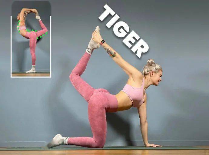 ·四角跪姿进入,吸气,屈左膝向上,左腿尽量上抬;
