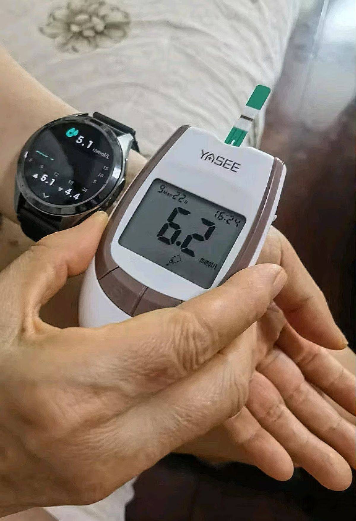 清晨,是一天开始的时刻,很多糖尿病患者都会进行早晨的血糖监测。使用舒糖测糖手表,只需佩戴在手腕上,并轻轻一抬手,实时的血糖数据便会展示在屏幕上。这样一来,患者就可以快速获取到早晨的血糖水平,来判断夜间的血糖控制情况,调整早餐的饮食。