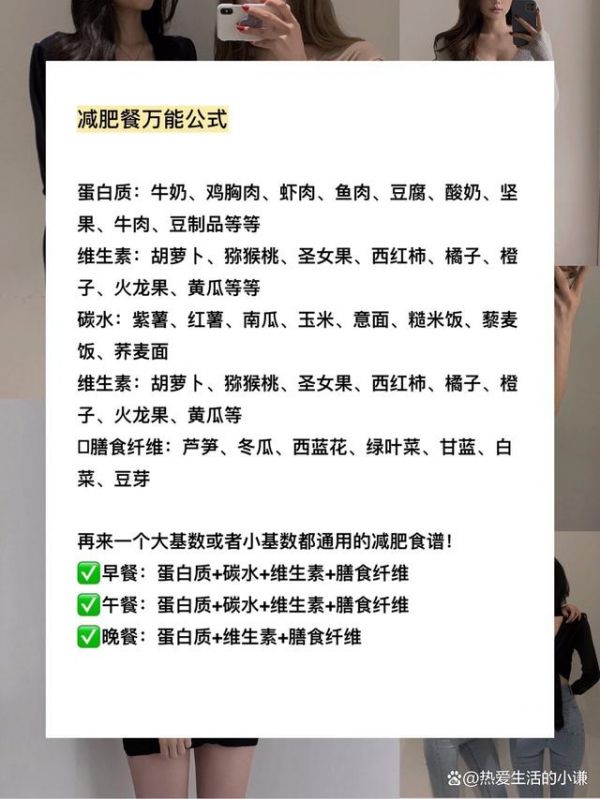 (3) 合理分配三餐热量:对于减肥,不少人的理解是尽量少吃,但其实这种减肥方式很不科学,因为长期这么做会导致身体各项指标都降低,加重身体负担。实际上,科学的减肥是要保持三餐偏高蛋白、高纤维、低脂肪、低热量均衡饮食来减肥,这份均衡饮食方案是我每天的减肥餐单。