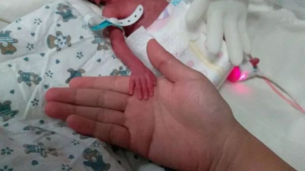 他是禅城中心医院体重最轻的早产儿,生下来的时候只有530克,重量相当于1瓶矿泉水,身体只有豆腐块般大,小细胳膊都不及成人的小手指大。在新生儿科经过130天的精心治疗,2019年2月28日,他终于出院回到了妈妈的怀抱。