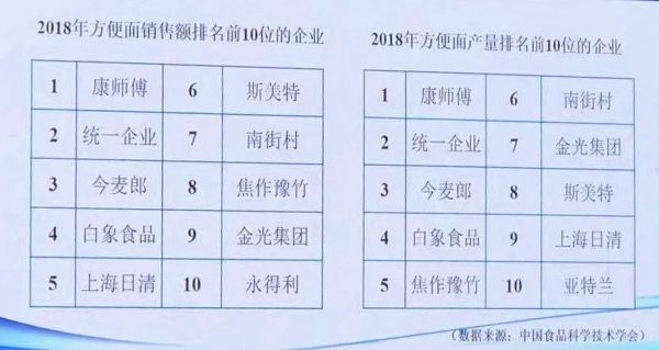 从销售额来看,康师傅、统一、今麦郎、白象以及上海日清,按顺序分列前五,这与市占保持一致。而斯美特和南街村则在销售额上力压农心、公仔、华丰,分别跻身第六和第七位。从产量上来看,排名前四位的企业依旧稳定,但焦作豫竹则一跃跻身前五,上海日清则落到了第九位,由此可见上海日清主打精品、高价特点,在产量上并没有太明显的优势。