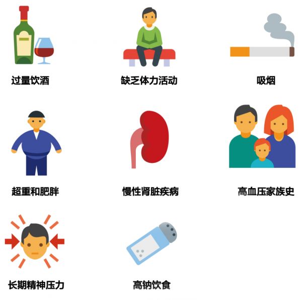 4)长期精神紧张:精神紧张可激活交感神经从而使血压升高,有研究显示,精神紧张者发生高血压的风险是正常人群的 1.18~1.55 倍数。