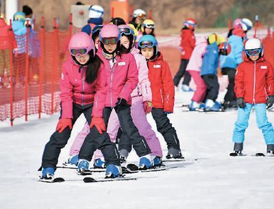 图为小朋友在北京延庆石京龙滑雪场学习滑雪。新华社记者 李 欣摄