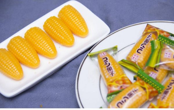 这种糖果的形状很特别,直接做成玉米一样的形状,浅黄色的颜色,看起来特别显眼。剥开包装之后,就闻到一股浓郁的玉米香味,吃起来口感十分软糯,跟玉米的口感很相似。不过,这玉米味并不是使用玉米作为原材料,只是添加了食用香精和人工色素。