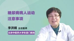糖尿病病人运动注意事项 2017-10-15阅读:9.86w 1、糖尿病病人运动应该每天都要坚持,并且每天的室外运动时间都不要少于一个小时。运动方式可以选择走路、网球、散步、高尔夫,这些都是很好的有氧运动。2、糖尿病病人在运动时一定要量力而行,不要过于激烈、出汗太多、耗氧太大,以及不要去做一些暴力损伤性的运动。 李洪娟 北京中医药大学东直门医院