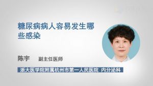 糖尿病病人容易发生哪些感染 2019-09-30阅读:3.94w 糖尿病病人的感染也是非常常见的:1 泌尿系统的感染,肾盂肾炎,肾盂肾周的脓肿,甚至脓肿可以入血,变成败血症。2 肺部的感染,也比较常见的,肺炎,肺脓肿,它有金黄色葡萄球菌,链球菌也有肺咳(音),当然也有一些毛霉菌,曲霉菌,糖尿病结核也是非常高发的。3 消化系统,胆道系统,肝胆系统,也是非常容易合并感染的,胆囊炎,肝脓肿,肝脓疡甚至败血症,也是一些革兰氏阴性杆菌,包括肺咳也是比较常见的。4 皮肤感染,每一个糖尿病患者,基本上都可以看到是有灰指甲,有脚气,这就是真菌的感染,当然如果合并严重的糖尿病足,金黄色葡萄球菌的感染也比较多见的。5 牙周的炎症,牙周的脓肿,还有外耳道的炎症,还有坏死性肌筋膜炎,它的感染是比较多的。 陈宇 浙江大学医学院附属杭州市第一人民医院