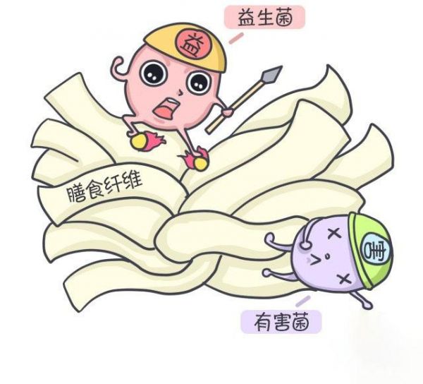 水溶性膳食纤维被肠道细菌发酵后可以合成短链脂肪酸,这个东东就是孕育益生菌的温床,短链脂肪酸还能调节肠道的PH值,更有利于益生菌的生长。益生菌强大了,肠道里的有害菌就不能兴风作浪,肠道更加健康了。