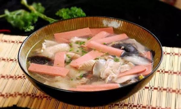 主料:火腿100克、鸡肉100克、平菇250克、白菜500克