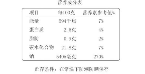 营养成分表里显示:每100克盐津话梅,热量594千焦,碳水化合物21.8克,这里的碳水化合物,主要就是糖,钠5405mg即5.4克。